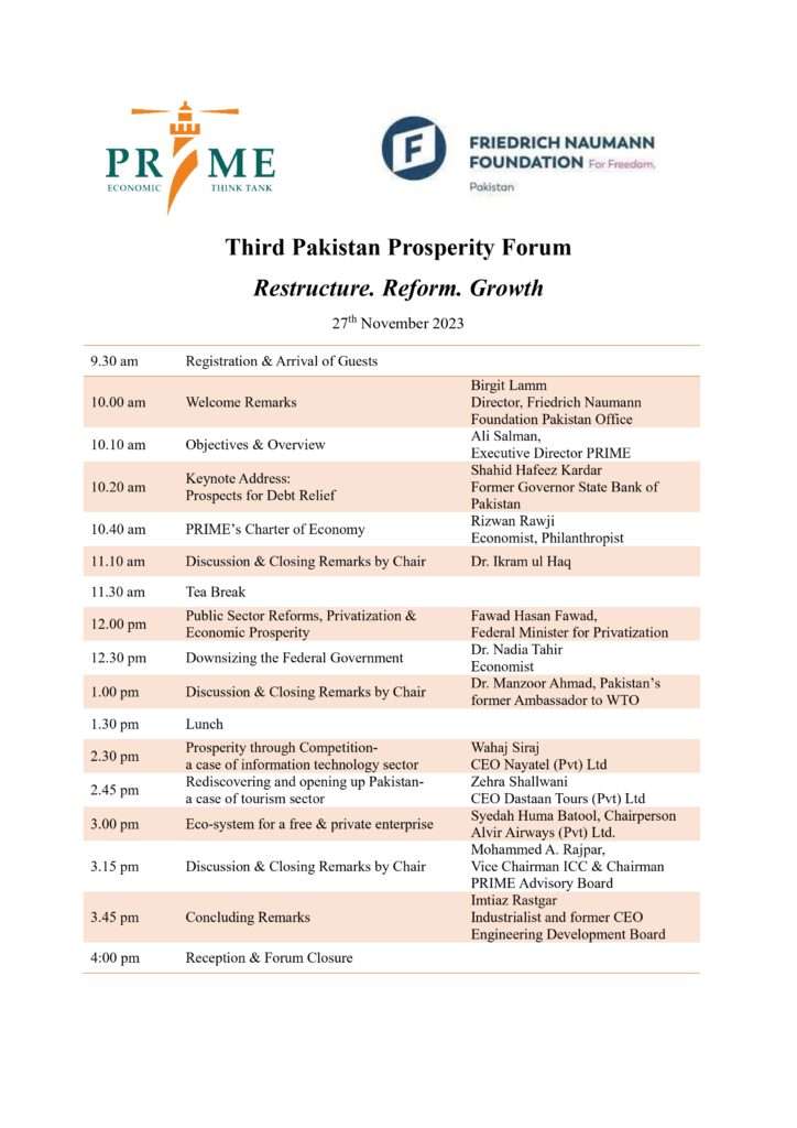 Policy Research Institute of Market Economy (PRIME) hosted the Third Pakistan Prosperity Forum, The conference brought together government representatives, IMF officials, business leaders, academics, and media professionals.